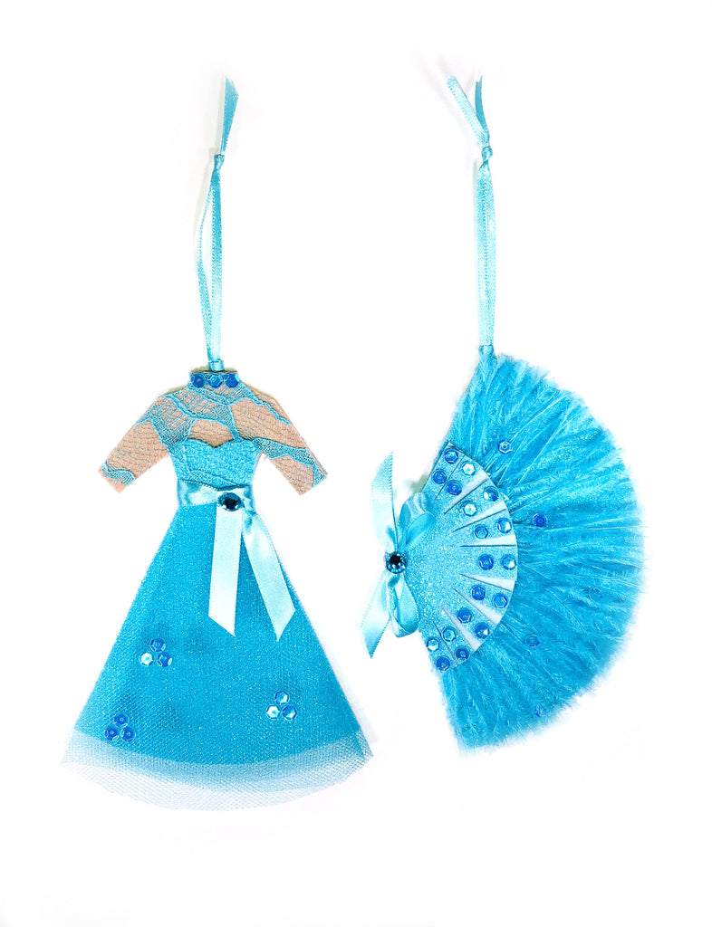 If you've ever seen the movie "White Christmas," then you know the song "Sisters." This iconic movie and popular song has been sung by fans for decades. Now you can own a Christmas ornament handmade by Heather French Henry that celebrates this song inspired by the famous Edith Head blue Fan in the scene by Rosemary Clooney and Vera Ellen.