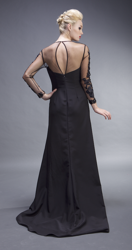 HFH1006 Heather French Henry Illusion Long Sleeve Black Gown